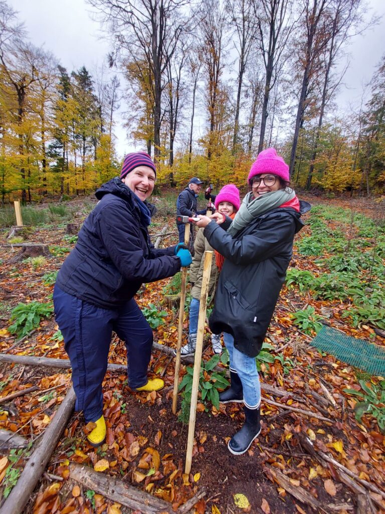 Trotz herbstlich-frischer Temperaturen war die Stimmung wunderbar warm und harmonisch – und mit viel Eifer wurden 100 junge Küstentannen, Eichen und Linden gepflanzt und direkt mit Einzelschutz versehen. Besonders schön: Die Kinder waren mit vollem Einsatz dabei – beim Buddeln, Stäbe einschlagen und natürlich beim Mitfiebern. ![]()